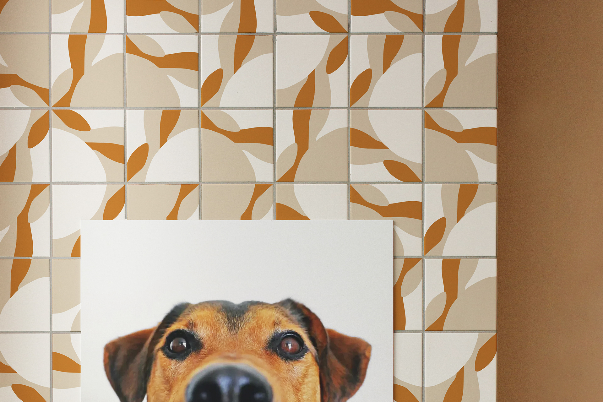Auzulejo Caramelo partiu da ideia de criar um conjunto de azulejos inspirado numa paixão nacional: os vira-latas caramelos. O projeto de design de superfície que surgiu a partir daí se enveredou num processo de criação experimental e de abertura ao acaso, tal qual é a mistura de raças dos nossos doguinhos.