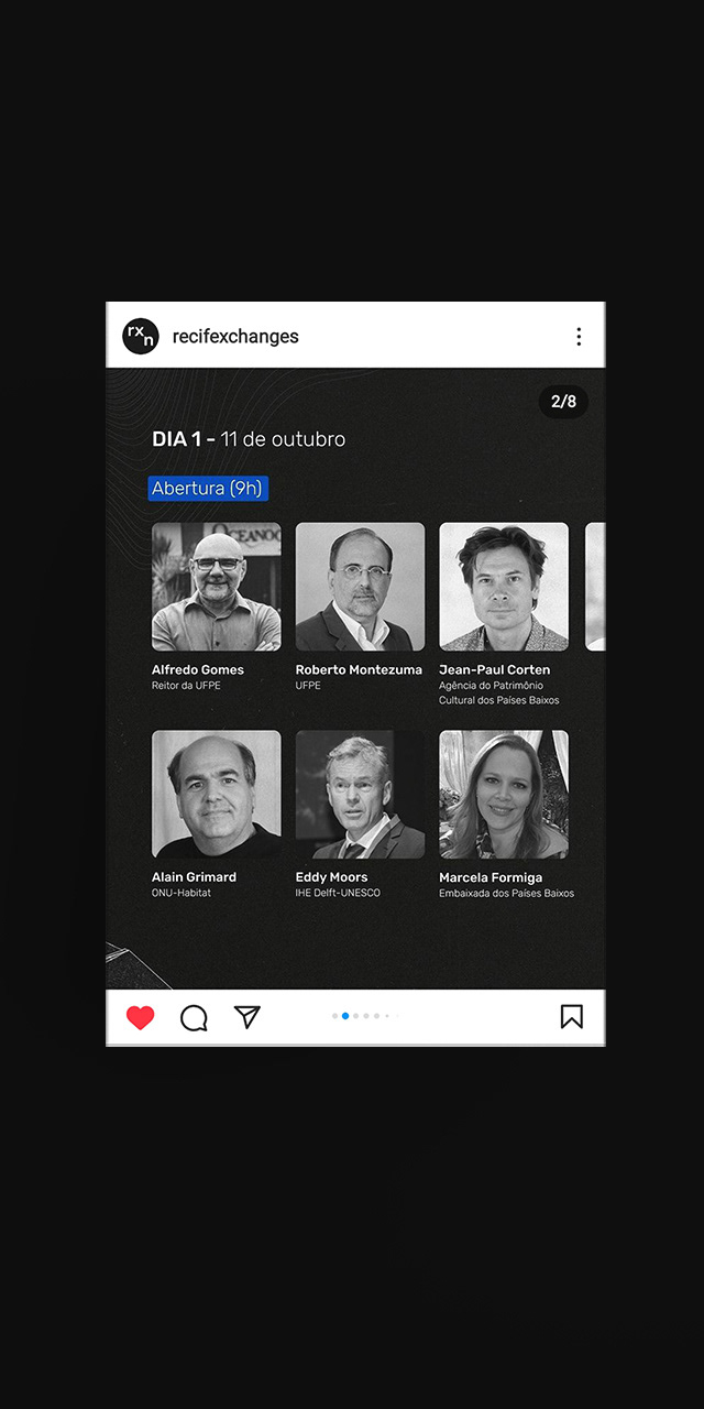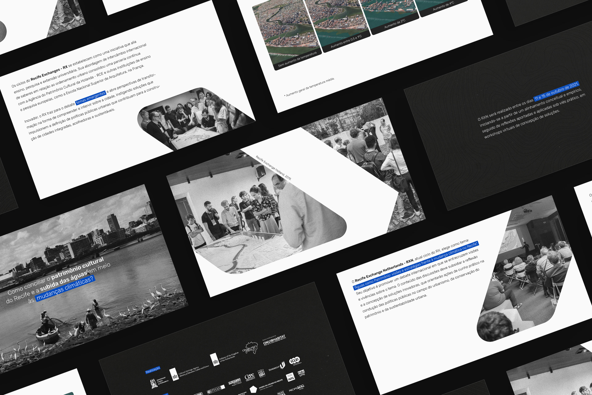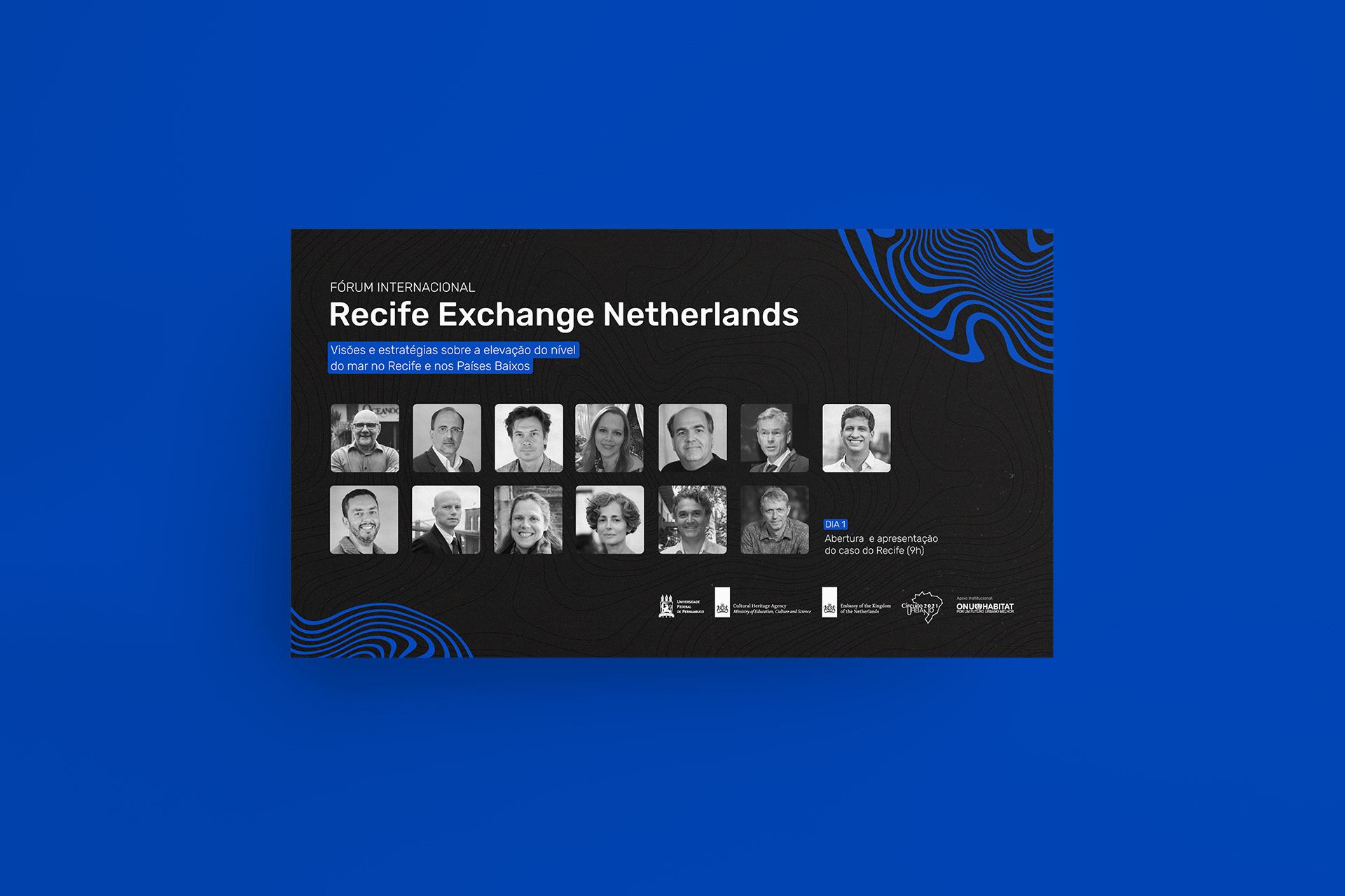 Com o tema "Águas como Patrimônio: visões e estratégias frente à mudança climática no Recife e nos Países Baixos", sua identidade visual buscou representar visualmente as urgências que o fórum suscitou, num evento multitela e com públicos de diferentes lugares do mundo.