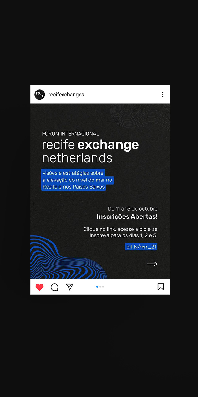 Em 2021, o Recife Exchange Netherlands (RXN), um dos ciclos do Recife Exchanges, promoveu debates internacionais sobre a elevação das águas na cidade do Recife, a fim subsidiar a reflexão, a troca de vivências e a concepção de soluções.